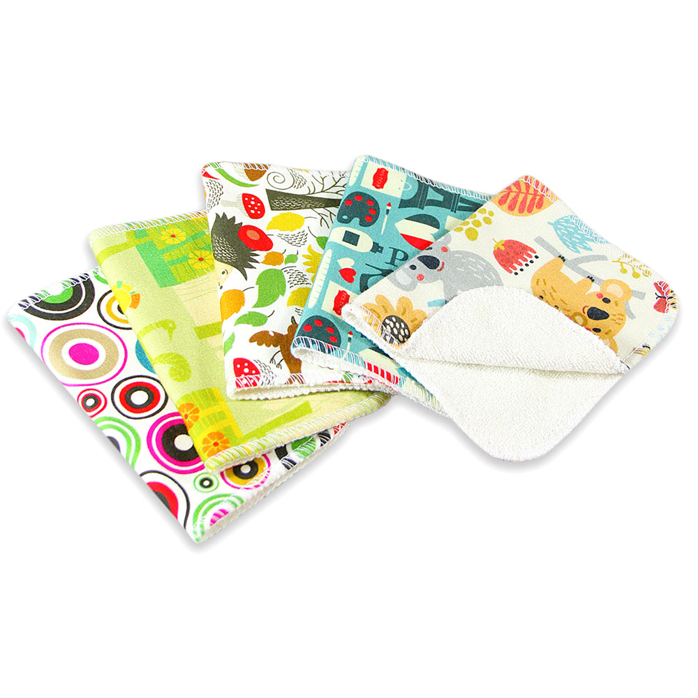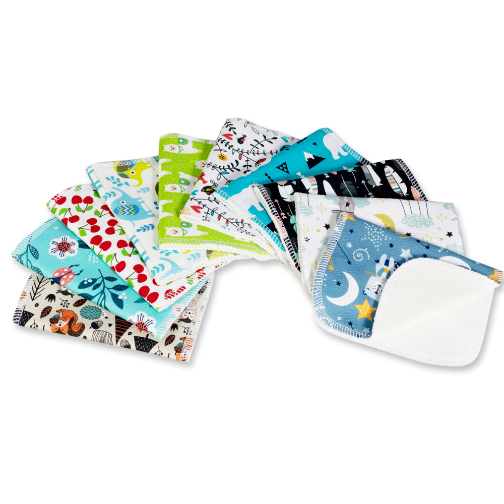 Petit Lulu Feuchttücher sind kleine, handliche Waschlappen, ideal für die Pflege deines Kindes. Die zweilagigen Tücher sind in verschiedenen Varianten verfügbar. Wahlweise mit unifarbener Velours-Seite oder mit einer buntgemusterten Seite aus Baumwolle.