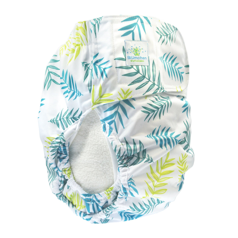 Blümchen - Kinder & Erwachsenen Stoffwindel (Inkontinenz Windel) - Grüne Blätter - XS (Junior) Bundweite 38-60cm ist auf Lager und wird versandt, sobald es wieder verfügbar ist