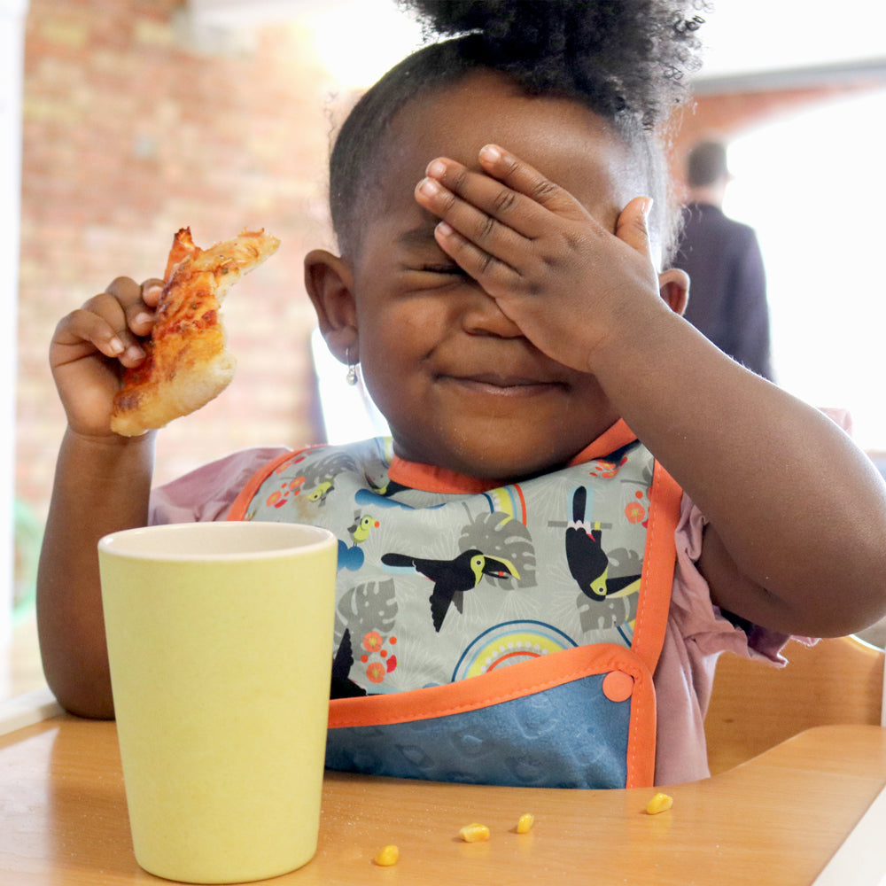 Entspannt und sorglos essen mit den besten abwischbaren Lätzchen für Essanfänger*innen, Tomatenkleckser*innen und Apfelmusliebhaber*innen. In vier Größen für jedes Alter: für Säuglinge bis zu Kindern über 36 Monate. Wahlweise als Baby-Lätzchen oder "Coverall" für Kleinkinder ohne Ärmel oder als Langarm-Variante.