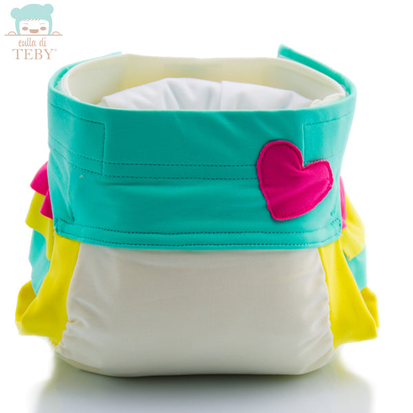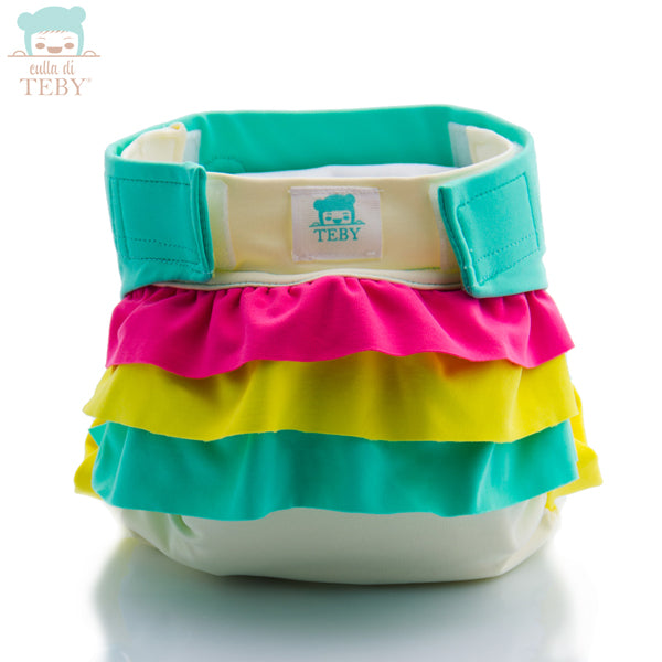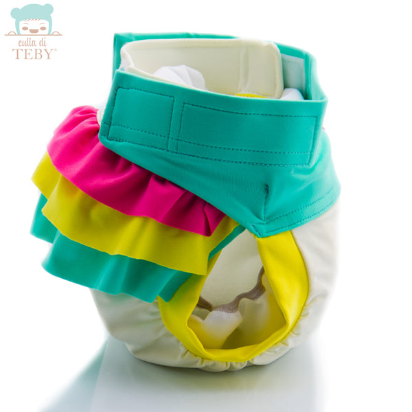 Culla di Teby - "Soft Touch" Überhose - Schwimmwindel - (EINZELN) - Weiß & Türkis (mit Rüschen)