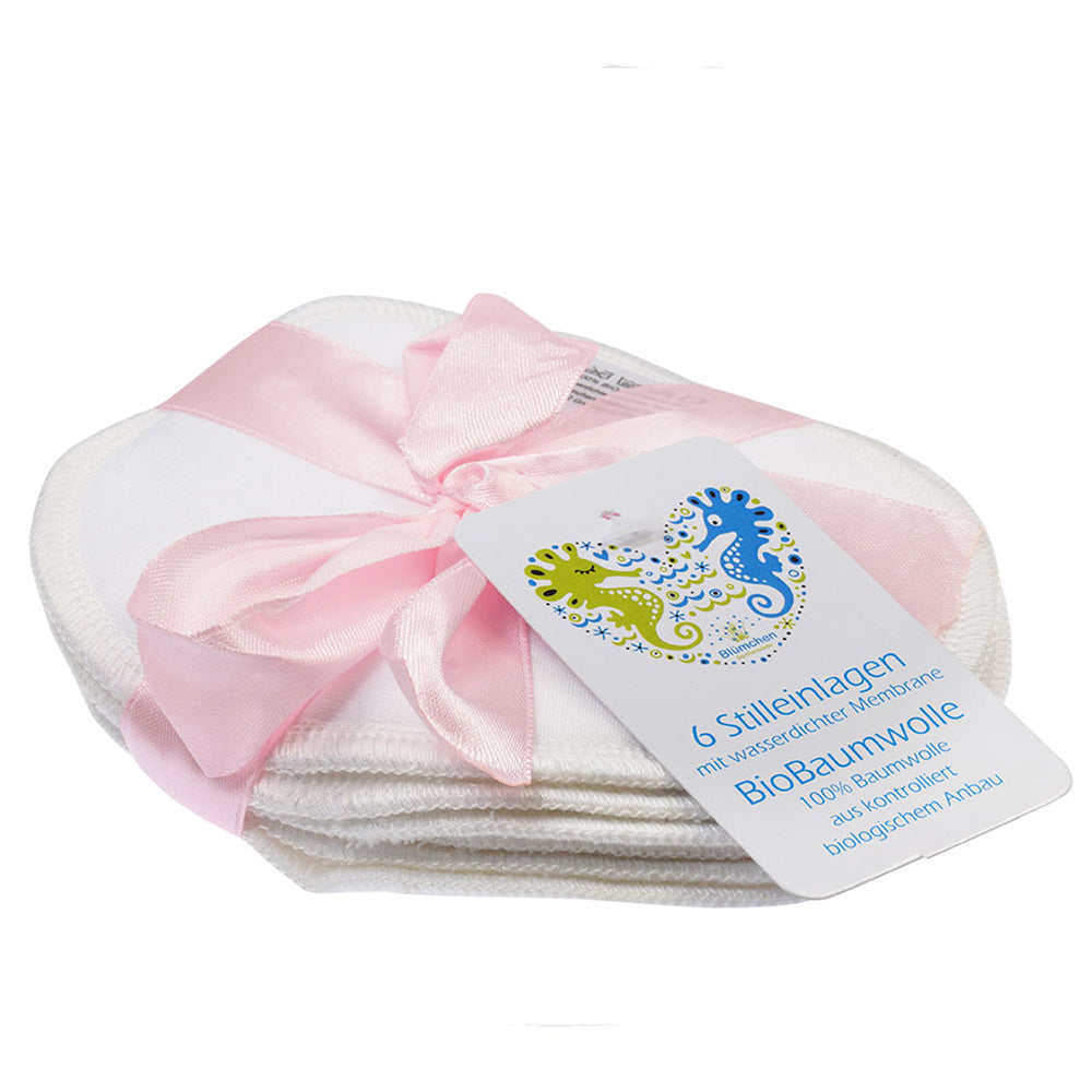 Die Einlagen sind waschbar und wiederverwendbar. Ein Wäschenetz schützt sie beim Waschen in der Maschine und macht die Pflege besonders unkompliziert – perfekt für einen nachhaltigen Alltag mit Baby.
