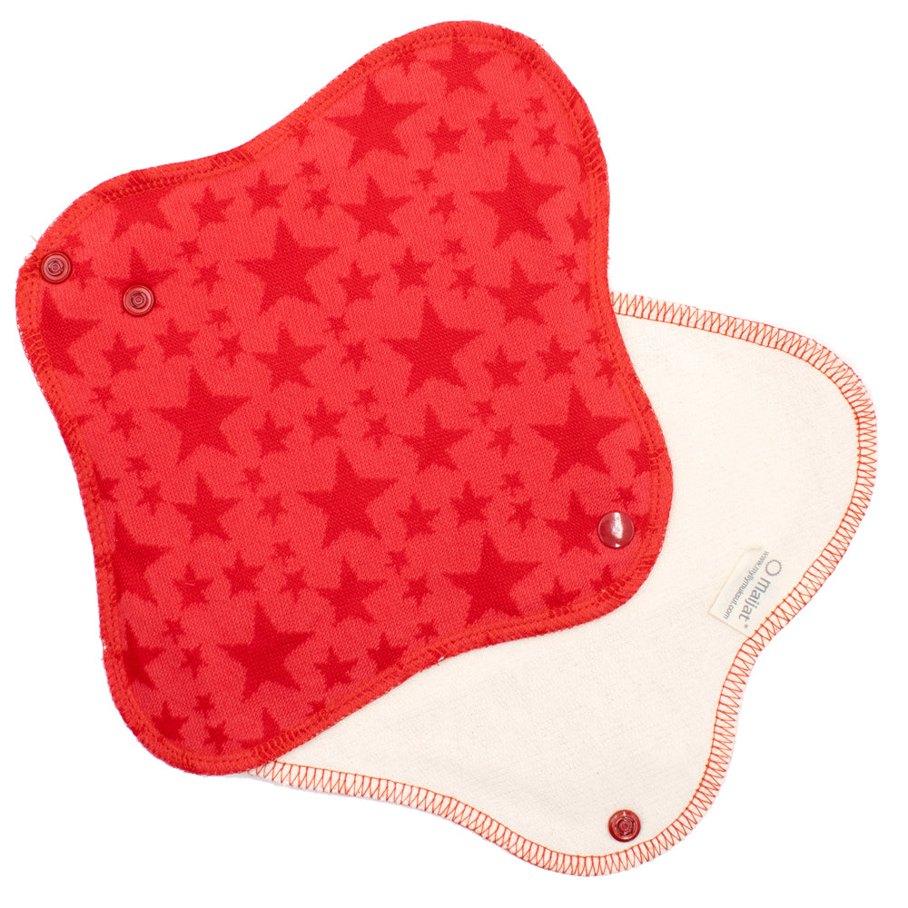 Die Maijat Stoffbinden mit Obermaterial aus Bambus-Viskose und Bio-Baumwolle sind in verschiedenen Größen erhältlich. Die kleine Slipeinlage ist ideal für die tägliche Verwendung oder als Back-up, wenn Sie zusätzlich z.B. eine Menstruationstasse verwenden. Midi Stoffbinden sind geeignet für Frauen, die tagsüber einen zuverlässigen Schutz bei leichter bis normaler Blutung benötigen. In der Nacht oder bei starker Blutung ist die Maxi-Größe die ideale Wahl.