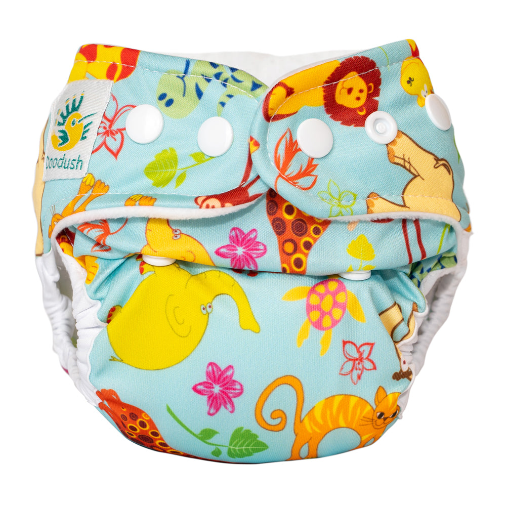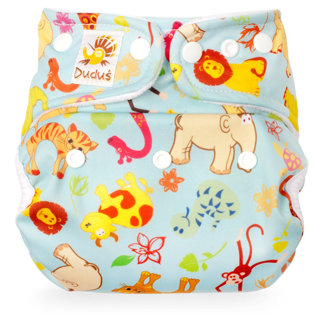 Doodush - V2.0 Überhose mit Laschen - Blue Safari (Wilde Tiere) - Newborn (2-7 kg) ist auf Lager und wird versandt, sobald es wieder verfügbar ist