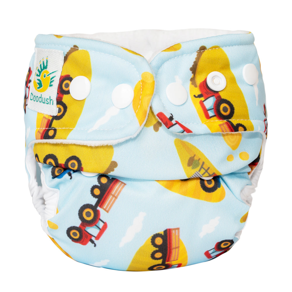 Die neue PUL-Überhose von Doodush besteht aus einer doppelten wasserdichten PUL-Außenschicht (PU-Laminat). Diese ist schön weich und mit tollen Designs verziert. Sie passt den meisten Kindern von Geburt bis zum Trockenwerden (One-Size-Größe). Für zierliche Kinder oder Frühchen die direkt nach der Geburt noch zu klein sind für die Einheitsgröße, gibt es die Newborn Größe - diese passt auch den kleinsten Erdbewohnern. Und auch an die größeren Kinder wurde gedacht. In der Größe XL passt die Überhose garantiert auch, wenn alles andere zu klein ist.