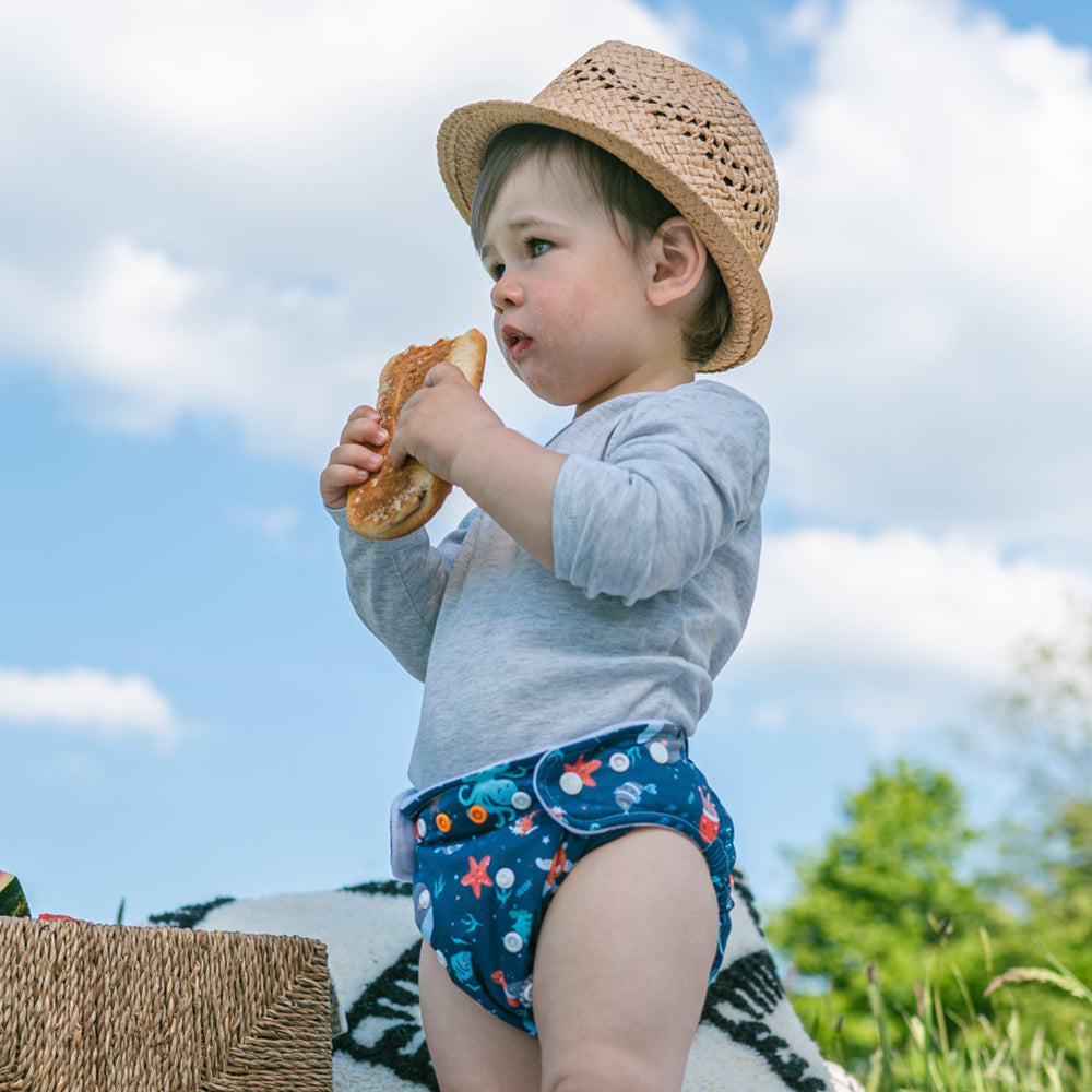 Der Vorteil diese Überhose ist es, dass Sie je nach Bedarf eine entsprechende Einlage, eine Prefold-Einlage oder eine Mullwindel in die dazu vorgesehenen Laschen einschieben können. Dabei können Sie frei entscheiden aus welchem Material die saugfähige Einlage sein soll, wie Sie die Falteinlage (Prefold) falten möchten oder wie viele Mullwindeln Sie einlegen. Sie können flexibel entscheiden welche Kombination von Einlagen Sie zu welchem Anlass verwenden möchten. Zudem benötigen Sie bei einem Überhosenwindelsystem nur wenige Überhosen - die nötigen Einlagen sind im Vergleich zu anderen Windelsystemen günstig zu erwerben. Mit diesem beliebten Überhosen-Einlagen-Windelsystem machen Sie mit Sicherheit nichts falsch, da Sie jederzeit Anpassungen vornehmen können.
