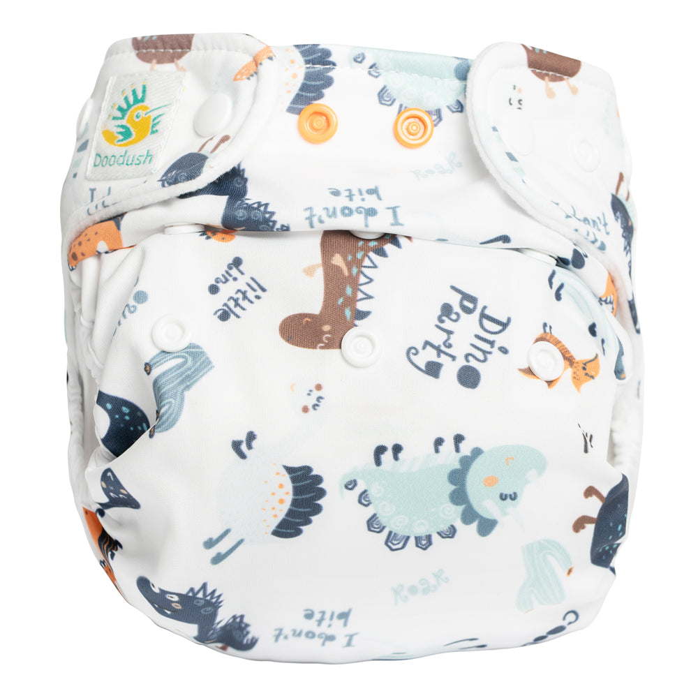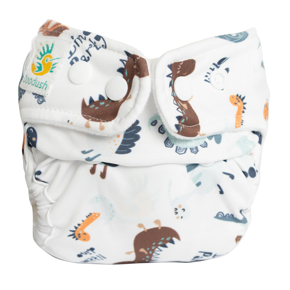 Doodush - V2.0 Überhose mit Laschen - White Dinos (Dinosaurier) - Newborn (2-7 kg) ist auf Lager und wird versandt, sobald es wieder verfügbar ist