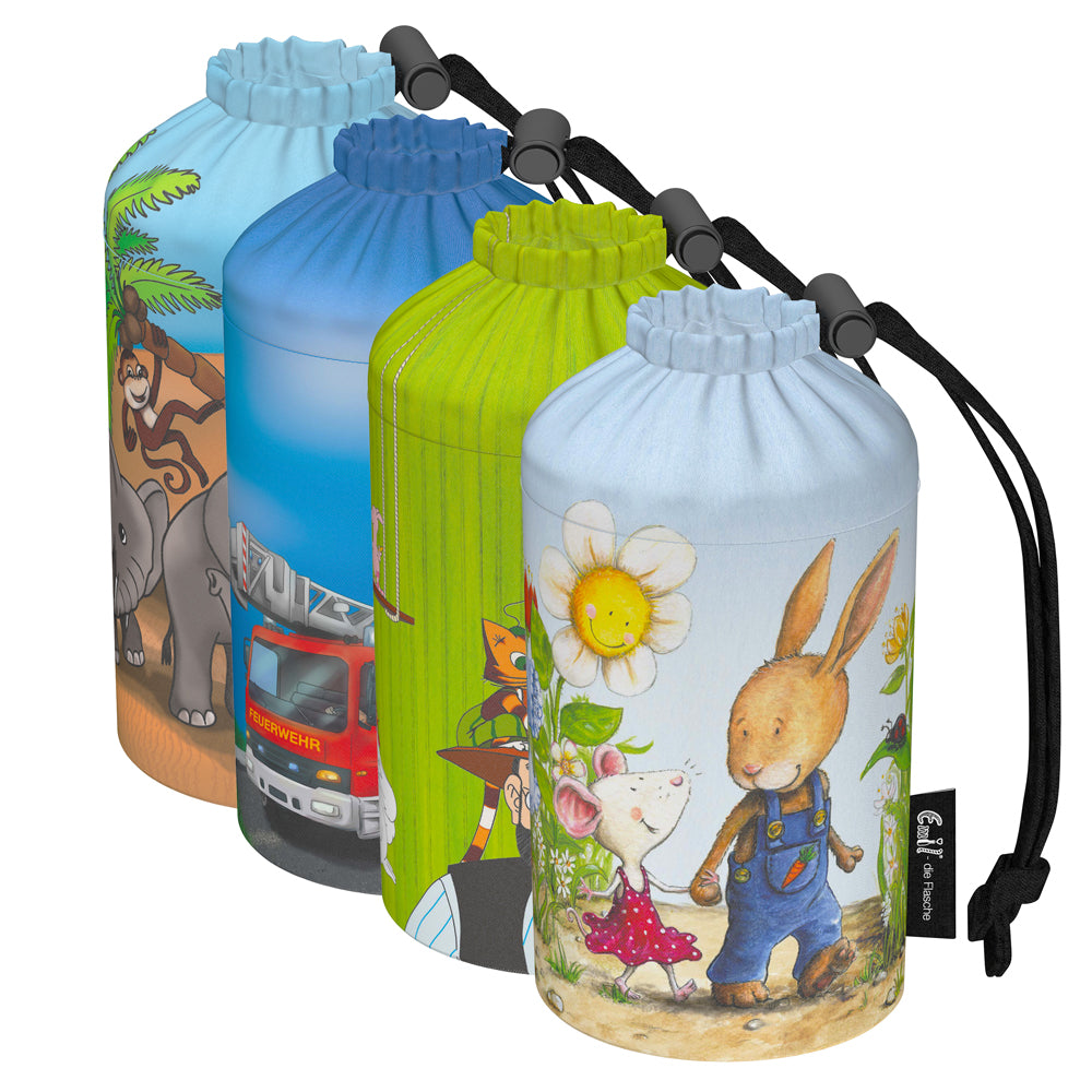 Der Flaschenbeutel Ihrer Emil Flasche ist einfach auswechselbar. Sie können ein aktuelles Design oder Muster bestellen um sich selbst oder Ihrem Kind eine Freude zu machen.