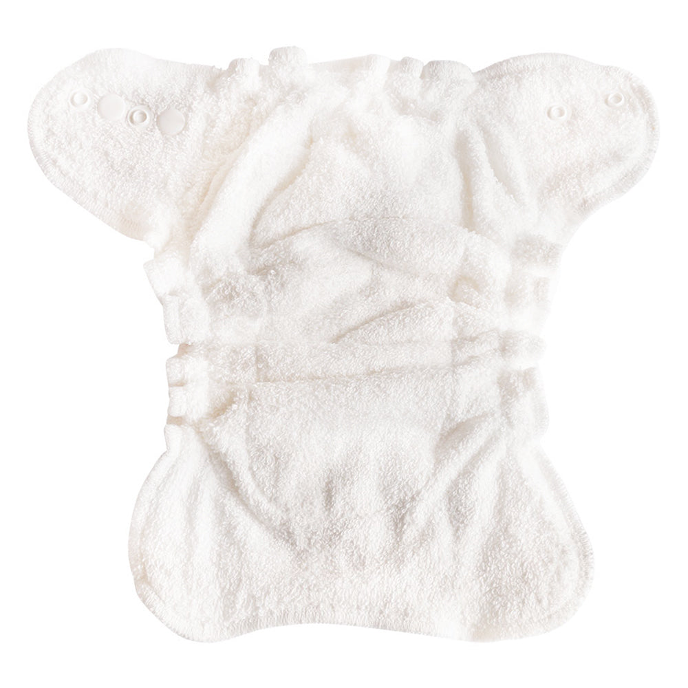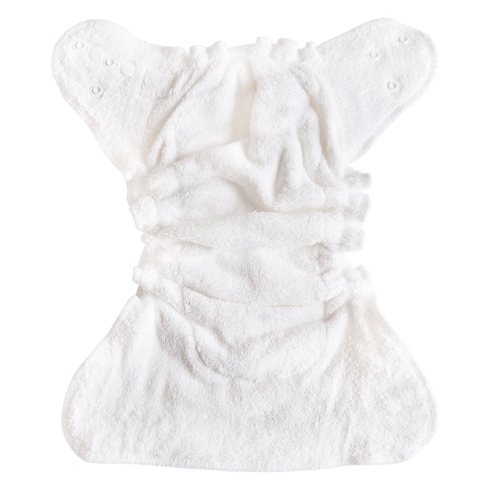 Waschbar bis 60 °C (aus Rücksicht auf die elastischen Abschlüsse). Nach dem Waschen bitte feucht ausschütteln, damit sich die Stoffschichten lockern – die Windel trocknet eher langsam.