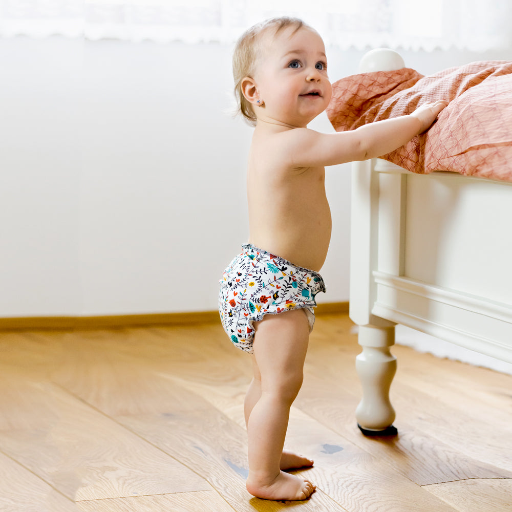 Druckknopf oder Klettverschluss: Die Höschenwindel ist wahlweise mit Klettverschluss oder Druckknöpfen erhältlich. Druckknöpfe sind besonders langlebig und lassen sich gut reparieren. Klettverschlüsse bieten eine stufenlose Anpassung, was die Passform verbessert – vor allem bei Neugeborenen oder in der Nacht. Wichtig: Klett vor dem Waschen am Gegenklett schließen!