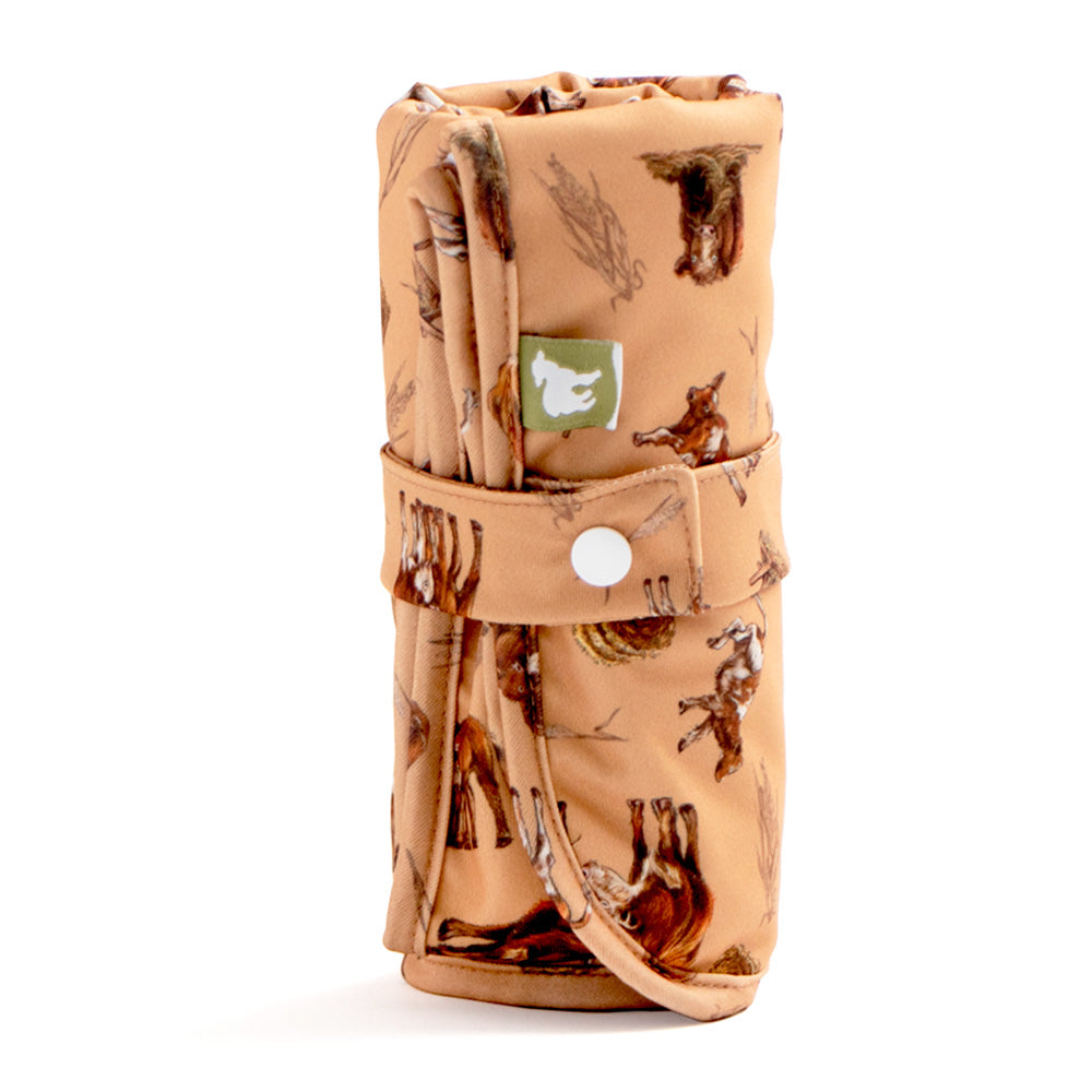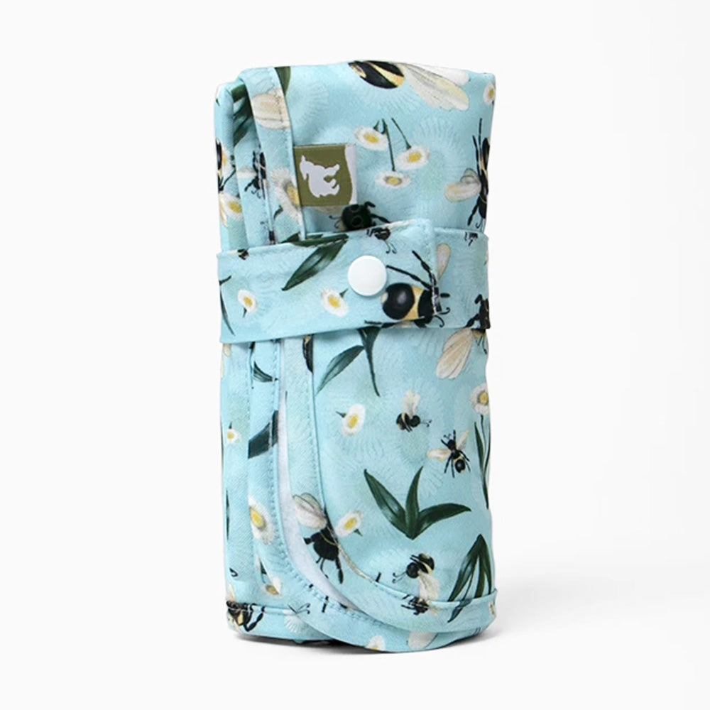 Die Wickelunterlage von Little Lamb lässt sich mit einer knöpfbaren Schlaufe praktisch und schnell zusammenrollen. Aufgrund der handlichen Größe, sobald sie zusammengefaltet ist, passt die Little Lamb Wickelunterlage in jede noch so überfüllte Wickeltasche. Ausgeklappt bietet sie genügend Platz für Ihr Baby.