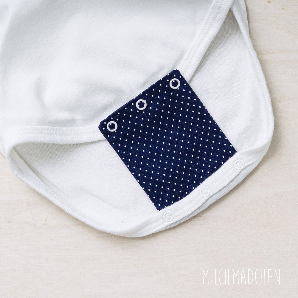 Egal ob du mit Stoffwindeln wickelst oder nicht. Mit einer Bodyverlängerung sitzt der Body bequemer und darf ein bis zwei Kleidergrößen mitwachsen. Dein Baby genießt mehr Bewegungsfreiheit und du sparst dank der Milchmädchen Bodyverlängerungen Geld und Ressourcen, da dein Baby die Bodys viel länger tragen kann.