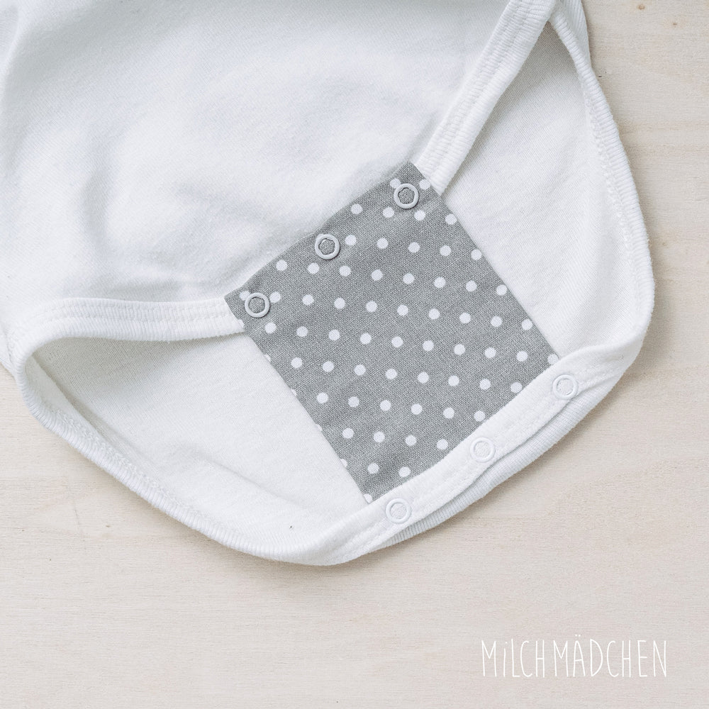 Egal ob du mit Stoffwindeln wickelst oder nicht. Mit einer Bodyverlängerung sitzt der Body bequemer und darf ein bis zwei Kleidergrößen mitwachsen. Dein Baby genießt mehr Bewegungsfreiheit und du sparst dank der Milchmädchen Bodyverlängerungen Geld und Ressourcen, da dein Baby die Bodys viel länger tragen kann.