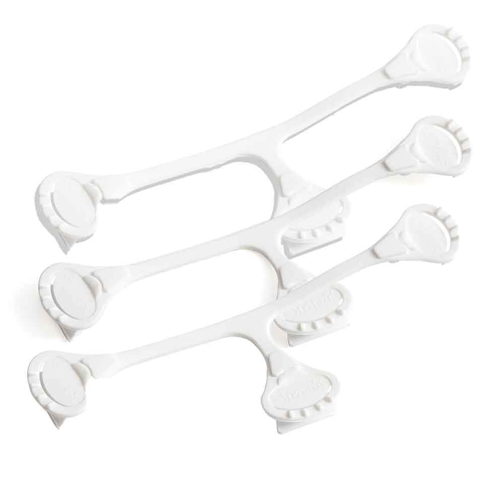 Anwendung: Nach dem Anlegen der Windel haken Sie die Windelklammer erst links ein, ziehen ein wenig, haken rechts ein und fixieren diese abschließend im Schrittbereich. Danach ziehen Sie wie gewohnt eine Überhose über die fixierte Unterwindel, so ist die Windelklammer sicher vor kleinen flinken Kinderhänden. Beim nächsten Windelwechseln können Sie die Windelklammer einfach wiederverwenden und bei Bedarf unter fließendem Wasser reinigen (nicht in die Waschmaschine geben).