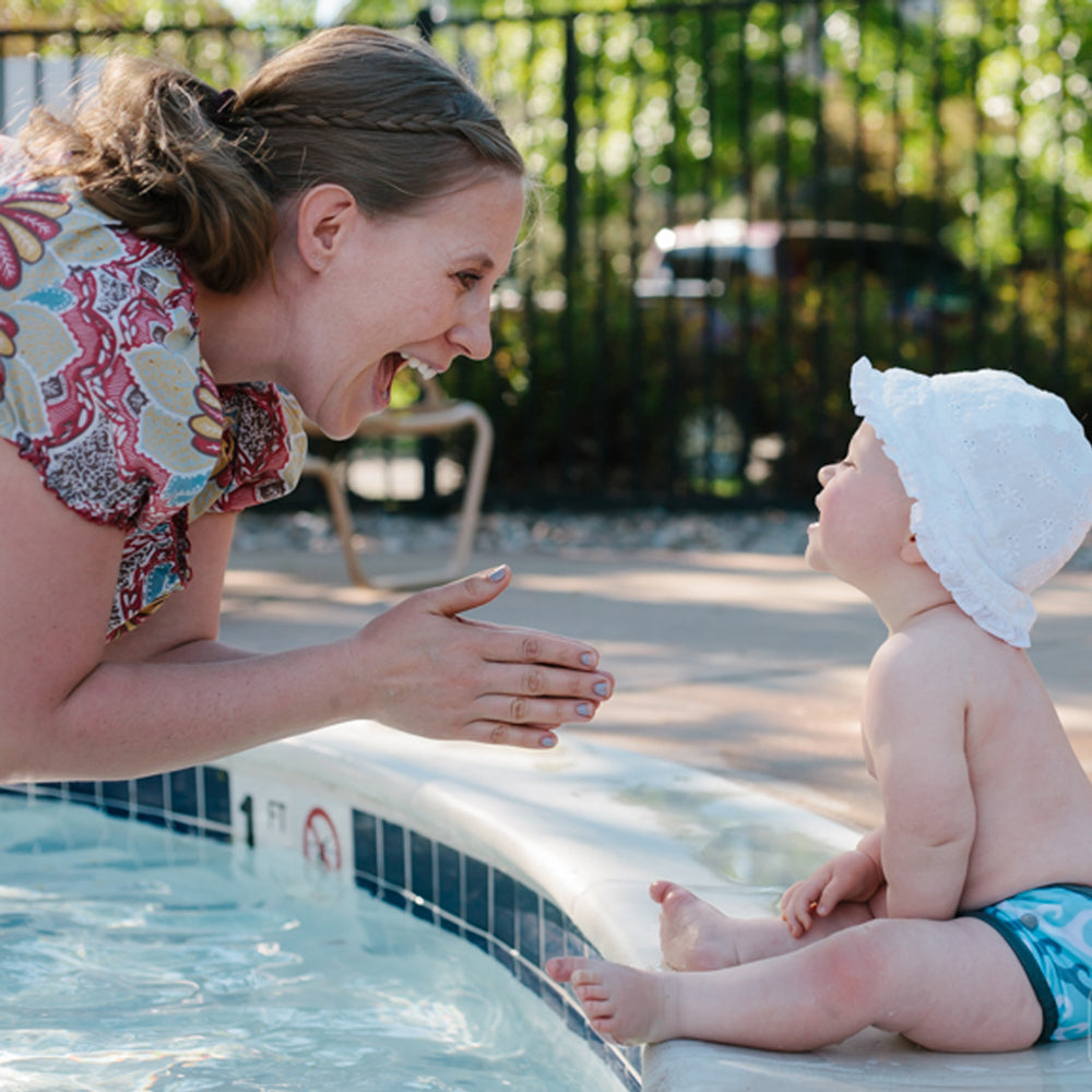 Tipp: Nach dem Anlegen der Schwimmwindel die Beinbündchen ggf. korrigieren und nach außen ziehen. Dies beugt dem Auslaufen der Schwimmwindel vor und verhindert Abdrücke.
