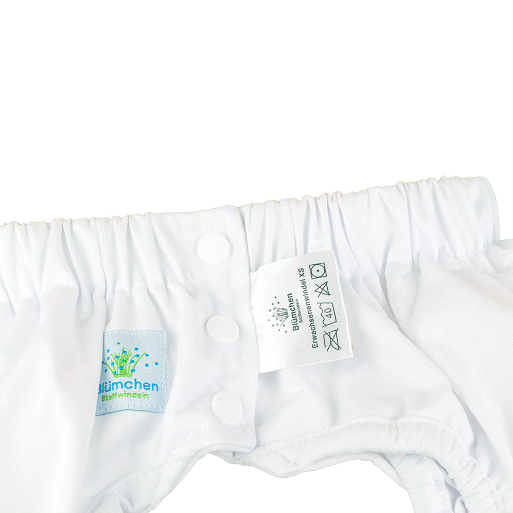Blümchen - Kinder & Erwachsenen Stoffwindel (Inkontinenzslip mit Druckknöpfen) - Weiß