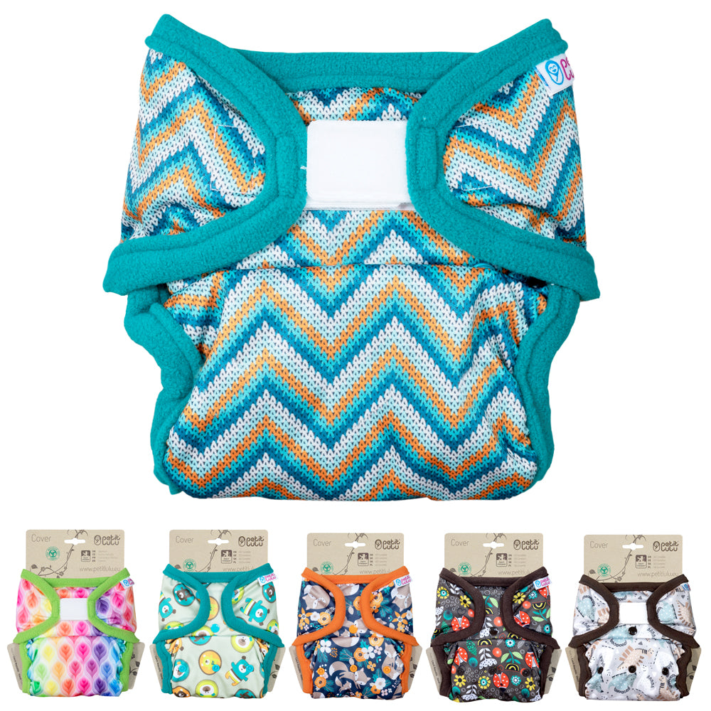 Windelüberhosen von Petit Lulu aus hochwertigem, feuchtigkeitsundurchlässigen und atmungsaktiven PUL (recyceltem Polyester). In drei Größen erhältlich: Newborn, One Size und XL-Maxi. Sie ist flexibel einsetzbar und ist die ideale Ergänzung zur XL-Höschenwindel Fluffy Organic von Petit Lulu.