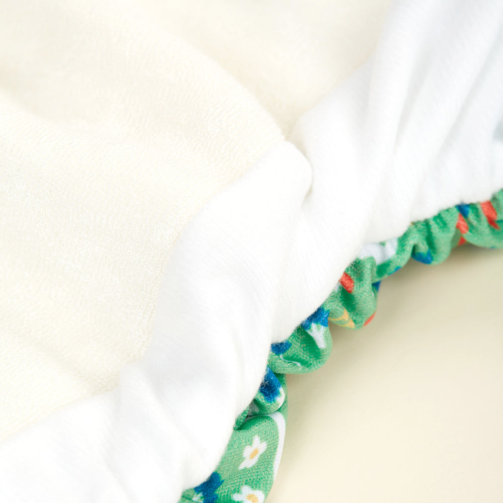 In Punkto Auslaufschutz überzeugt diese AIO auf ganzer Linie! Nahtfreie Beinabschlüsse mit feuchtigkeitsabweisendem "Stay-Dry-Einsatz" sorgen für besten seitlichen Auslaufschutz und bieten Schutz vor Durchnässen der Beinbündchen. ACHTUNG: Nach dem Schließen der Windel muss eventuell hervorstehender Futterstoff unter den wasserdichten Stoff geschoben werden, um einen optimalen Auslaufschutz zu erreichen.