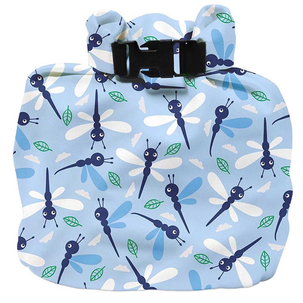 Eine praktische Nasstasche für unterwegs. Ideal für bis zu 4 Windeln oder nasse Badesachen. Das Besondere an dieser Wetbag ist, dass er komplett geruchs- und wasserdicht ist, dank eines Klickverschlusses und verschweißter Seitennähte. Der obere Rand der Wetbag wird zum Schließen umgeklappt und eingerollt und mit einem Klickverschluss geschlossen. So lässt er sich auch am Kinderwagen oder seitlich am Wickeltisch aufhängen.