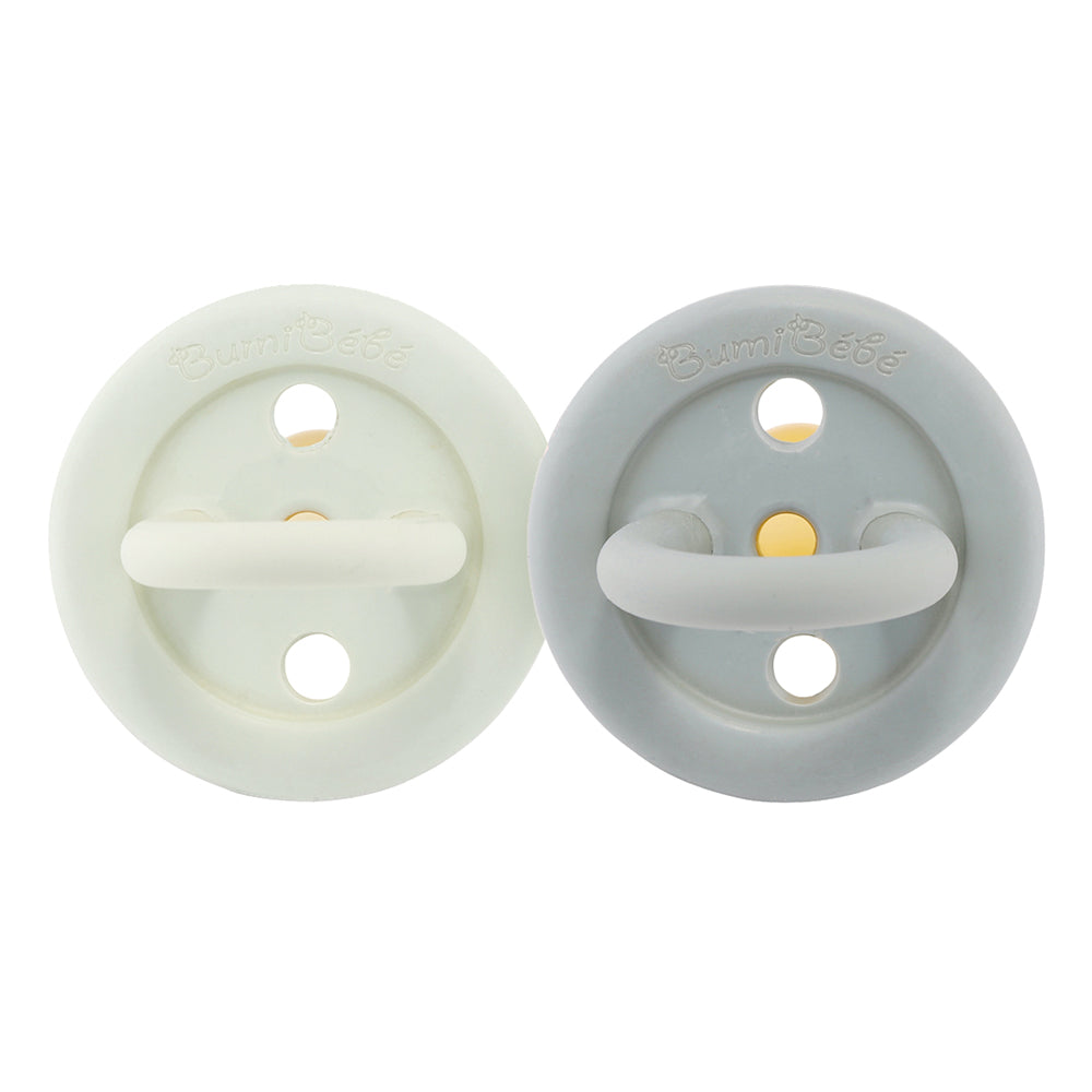 BumiBébé by HEVEA - Schnuller - Retro-Design - Rund - 100 % Naturkautschuk - 2er-Set - 2 Größen