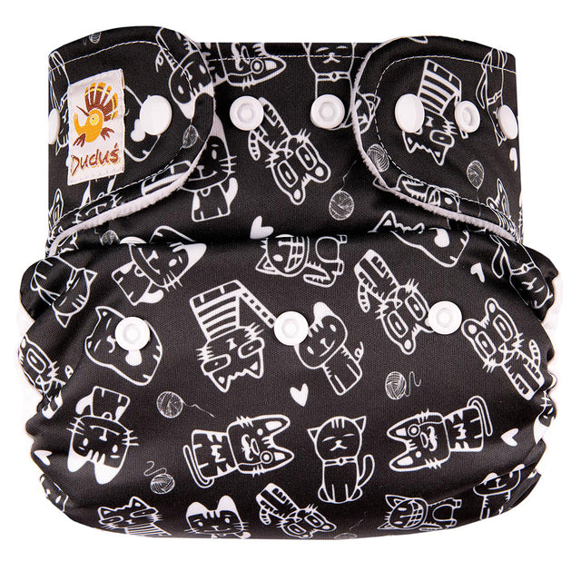 Die neue PUL-Überhose von Doodush besteht aus einer doppelten wasserdichten PUL-Außenschicht (PU-Laminat). Diese ist schön weich und mit tollen Designs verziert. Sie passt den meisten Kindern von Geburt bis zum Trockenwerden (One-Size-Größe). Für zierliche Kinder oder Frühchen die direkt nach der Geburt noch zu klein sind für die Einheitsgröße, gibt es die Newborn Größe - diese passt auch den kleinsten Erdbewohnern. Und auch an die größeren Kinder wurde gedacht. In der Größe XL passt die Überhose garantiert auch, wenn alles andere zu klein ist.